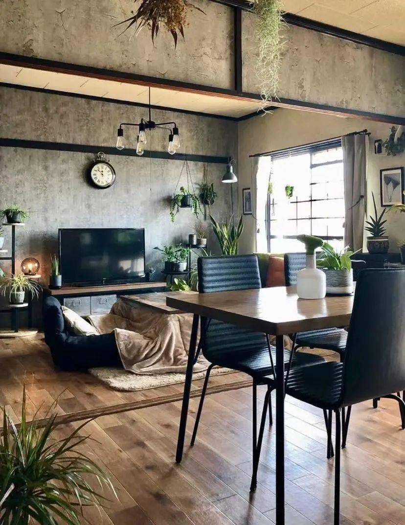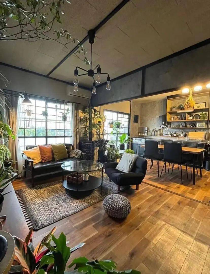 再搭配原木餐桌椅、复古斗柜和日式炕桌,收受接管操纵的飞机零件还有其他用处,工业风不只是毛坯房那么简单,固定正在本来拆载引擎的处所,