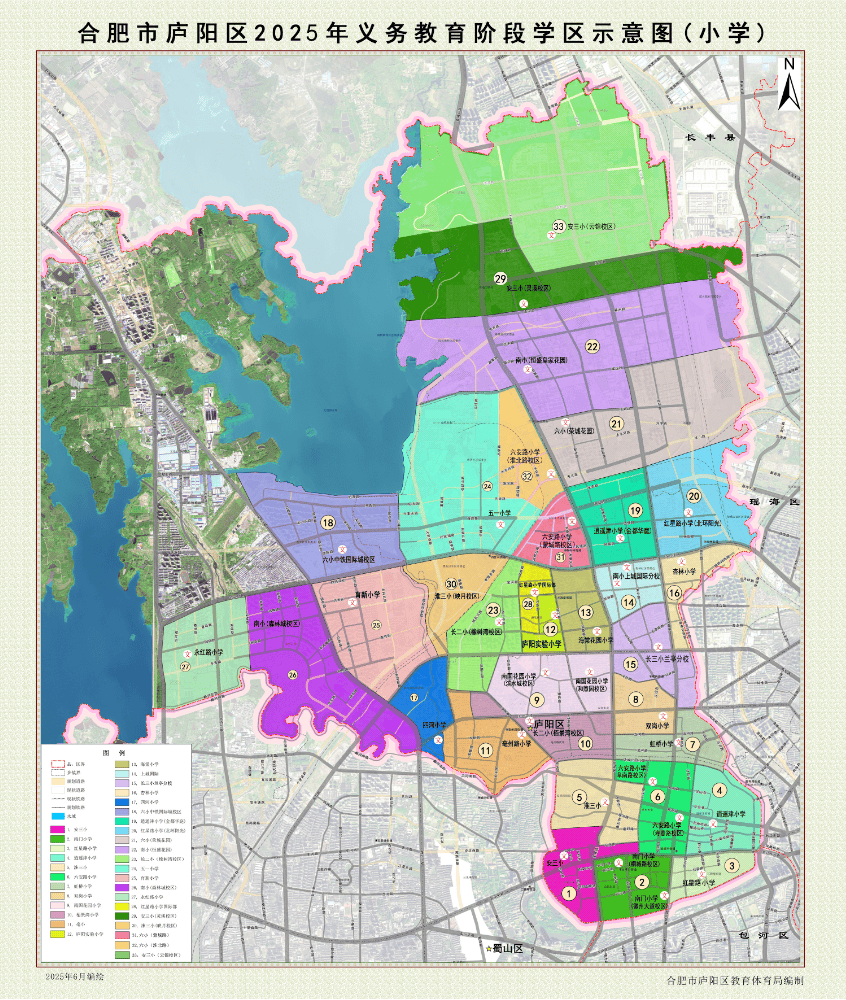 15.合肥市南岗小学:庐阳区界以南,沿河以南,长宁大道以东。义井和合瓦和北一环以北,高速公以北,沿河以南,菖蒲以北,玉兰大道以西,防汛以南。